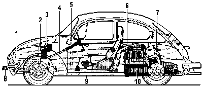 6.Belüftungsgitter:VW 412 7.Hinterachse:VW-Porsche 914 8.Zusatz-&Öuml;lkühler 9.Bodengruppe:VW-Porsche 914 10.Triebwerk:Porsche Carrera 210PS |